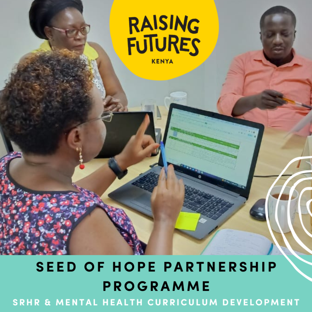 Seed of Hope Programme Manager, Florence Olwenge, has been working with experts to formalise the Seed of Hope added-value curriculum which partners will be trained on. The process has progressed well and the curriculum’s first draft is currently under review of Ministry of Health officials for both the mental health and the reproductive health and rights components. Our Kenyan partner, Raising Futures Kenya NGO, aim to have this review completed by the end of October 2023.